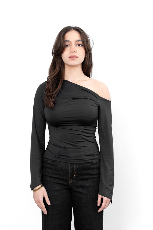 ASYMMETRICAL OFF-SHOULDER TOP - Black